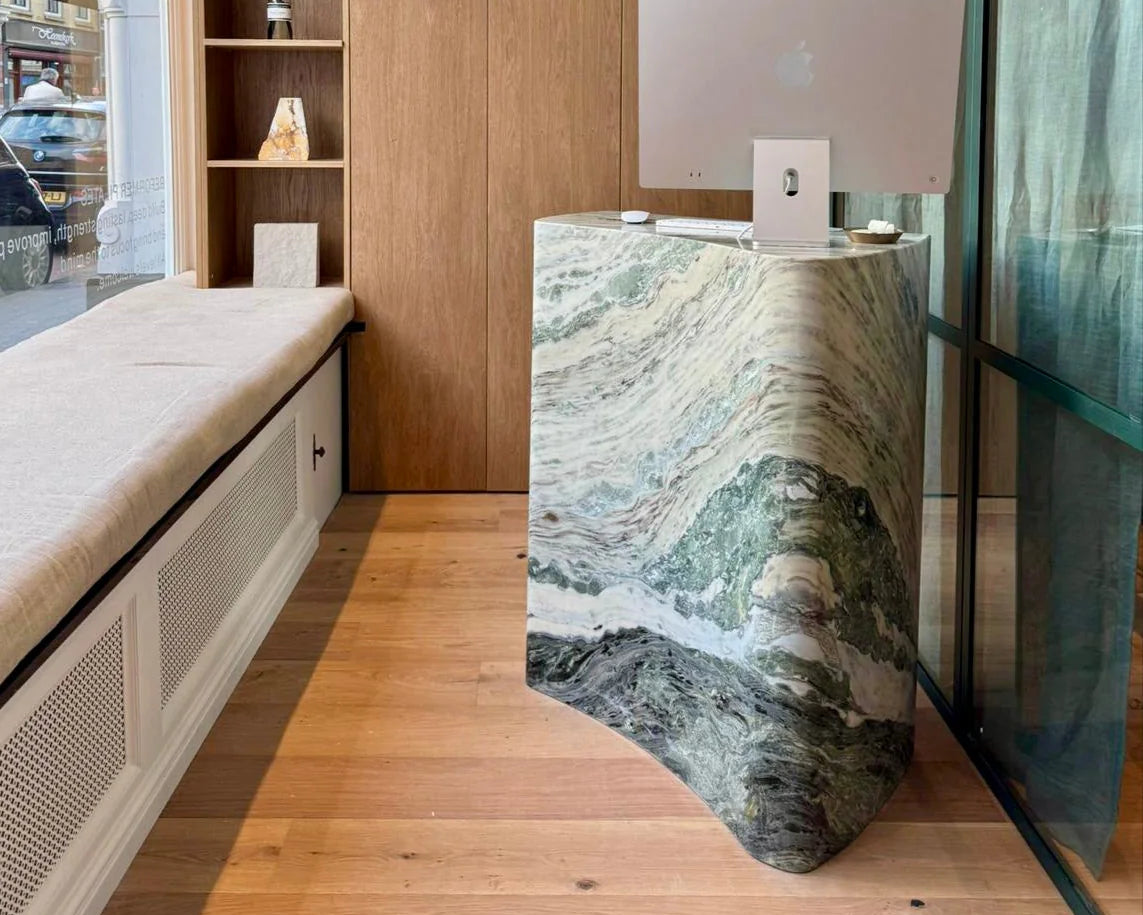 Discover our collection of handcrafted stone desks and consoles, designed for both residential and commercial spaces. Made to order in marble, travertine or limestone, each piece can be customised by size, finish, and stone selection to suit your project. Whether you're after a statement console for the entryway or a sculptural stone desk, our pieces are designed to anchor any interior. Complete your space with coordinating dining tables or coffee and side tables.