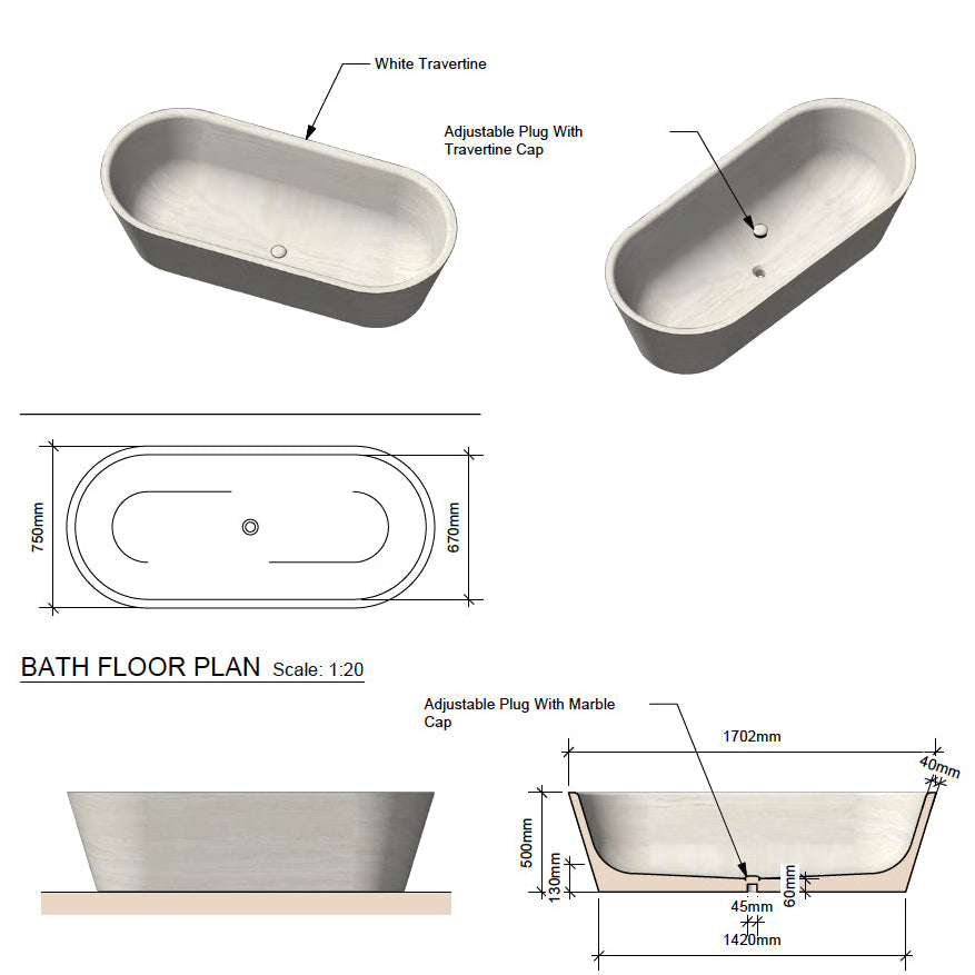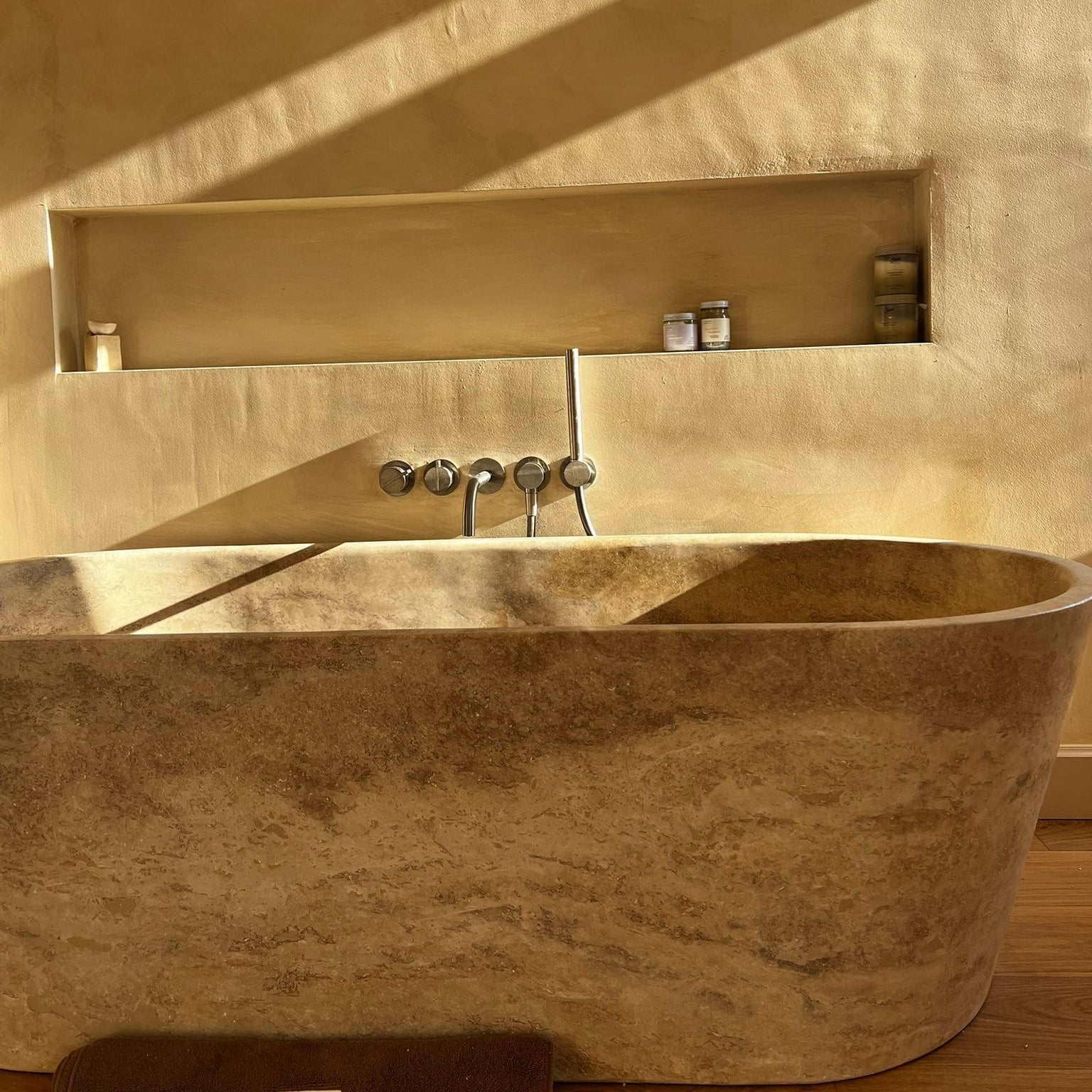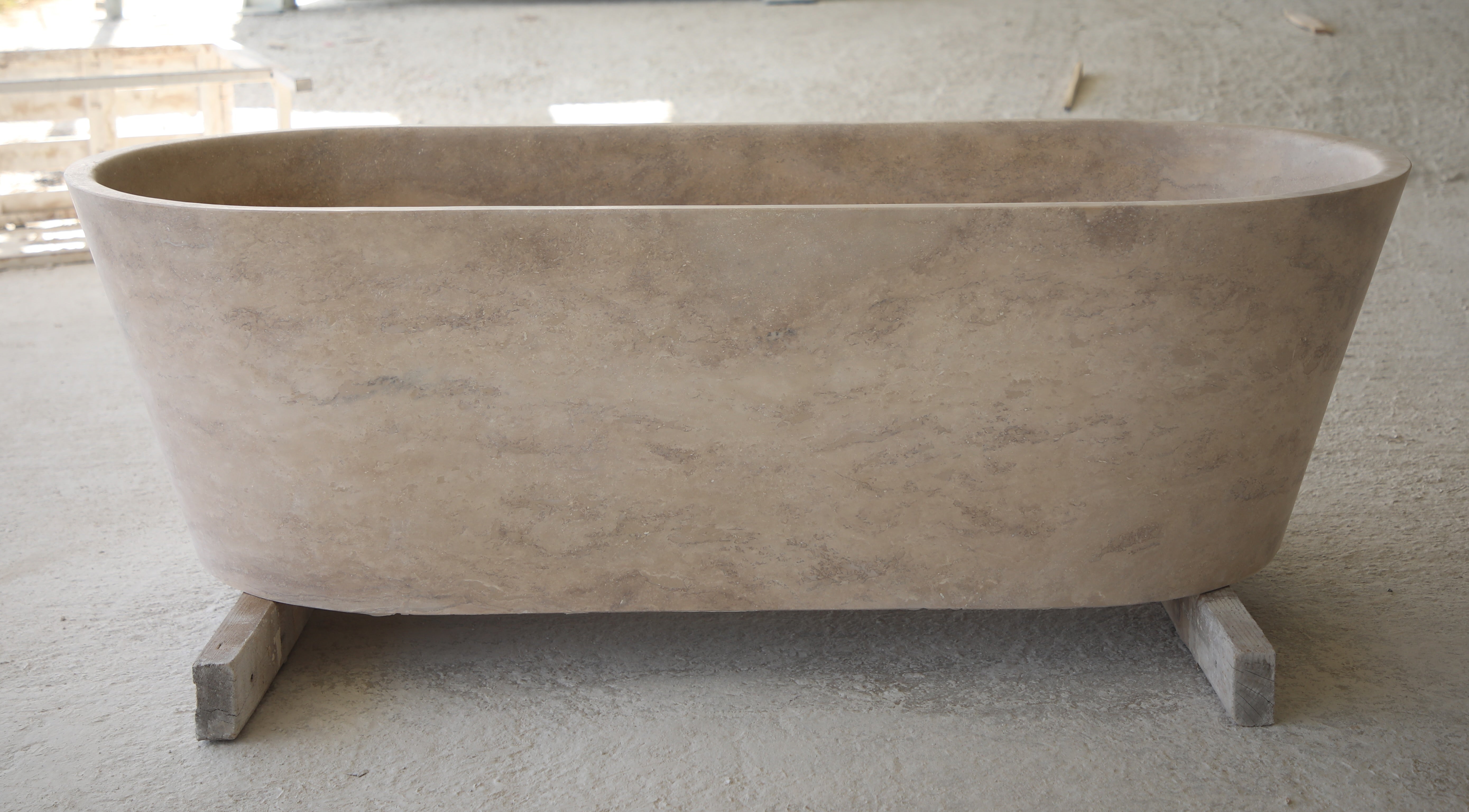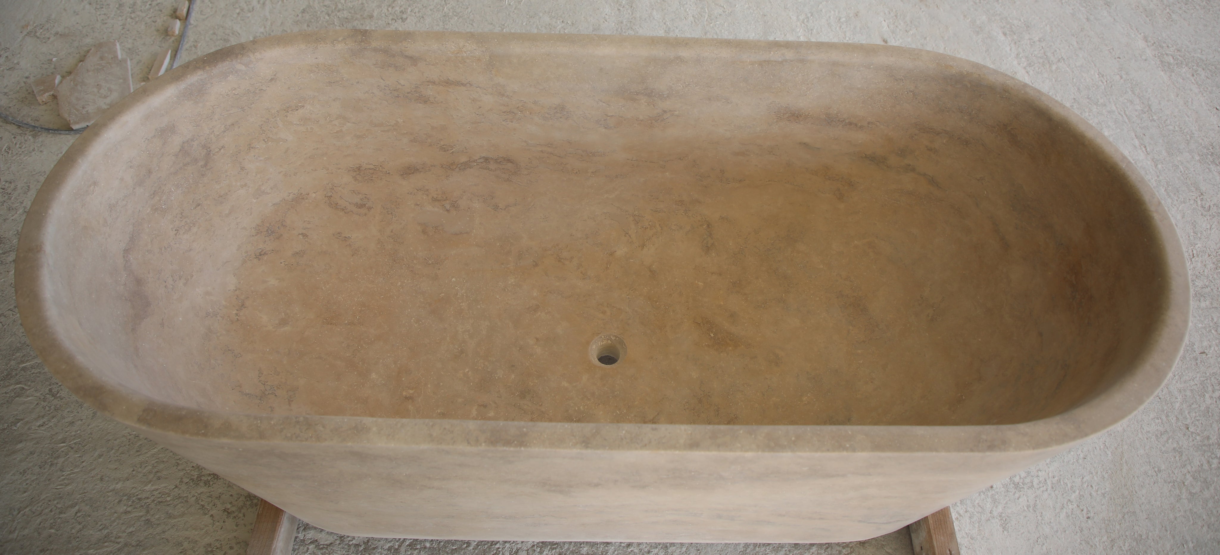 he Cova Stone Bath is a monolithic bathtub carved from a single block of natural stone, embodying natural beauty, ritual, and timeless design. Its soft lines and grounded silhouette create a sculptural focal point, transforming the bathroom into a serene retreat.
