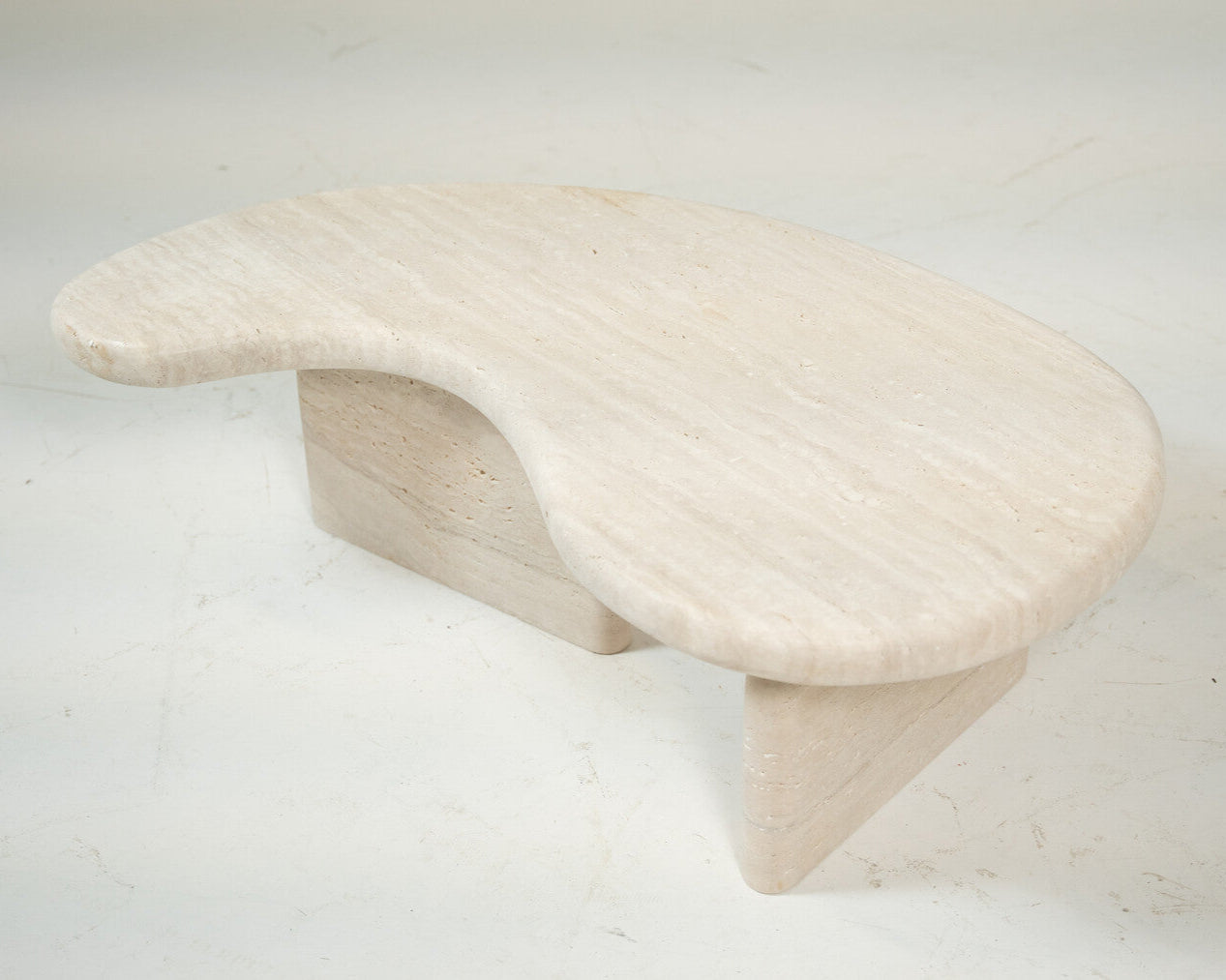 Composed entirely of natural stone, the Sophia Coffee Table features a gently curved 4 cm thick top with a soft bullnose edge, resting on two sculptural 4 cm thick organic legs.